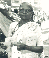 hat - that of Mahila Milan Street Banker, and go off up the lane in search