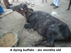 street. He points out a two-year-old buffalo that is so weak and thin it can’t