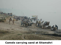 first time. Boats bring down sand from upstream, unload it into wicker baskets