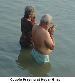 Kedar Ghat is full of South Indians washing dishes and bathing.